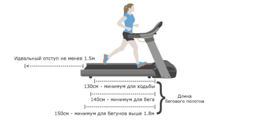 Для ходьбы и бега трусцой рекомендуемая длина полотна колеблется у отметки 130 - 135 см для пользователей любого роста.